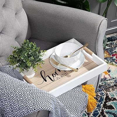 This display tray for ottoman coffee table has a sturdy, reliable design with durable and ergonomic handles, providing a safe grip. A coffee table is the focus of any living room furniture layout and creates the perfect spot for entertaining. Perfect for a dessert display or on a coffee table. Place this beautiful wooden tray on the coffee table to showcase a vase of flowers or on the dining table as a centerpiece. 5 out of 5 stars.